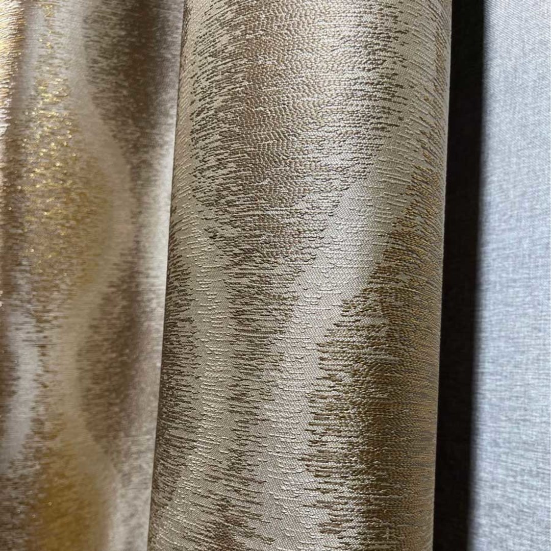 Upgrade your space with Gold Ripples Luxury Jacquard Geometric Blackout Curtains – an elegant blend of sophistication and style. The subtle gold ripple pattern adds timeless charm and a touch of luxury to any room.