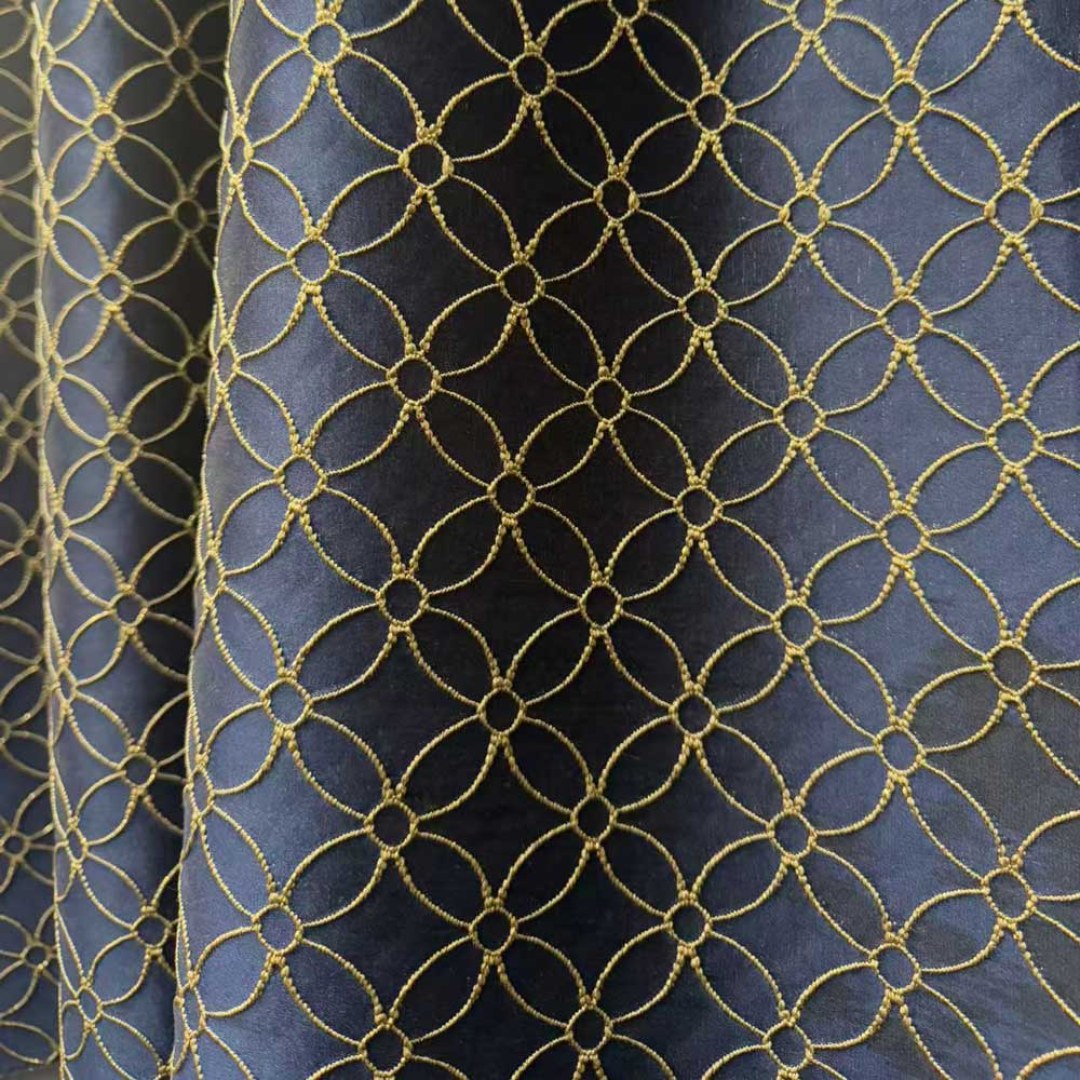Subtle metallic threads in gold infuse a graceful shimmer, enhancing the design with a refined touch of luxury.