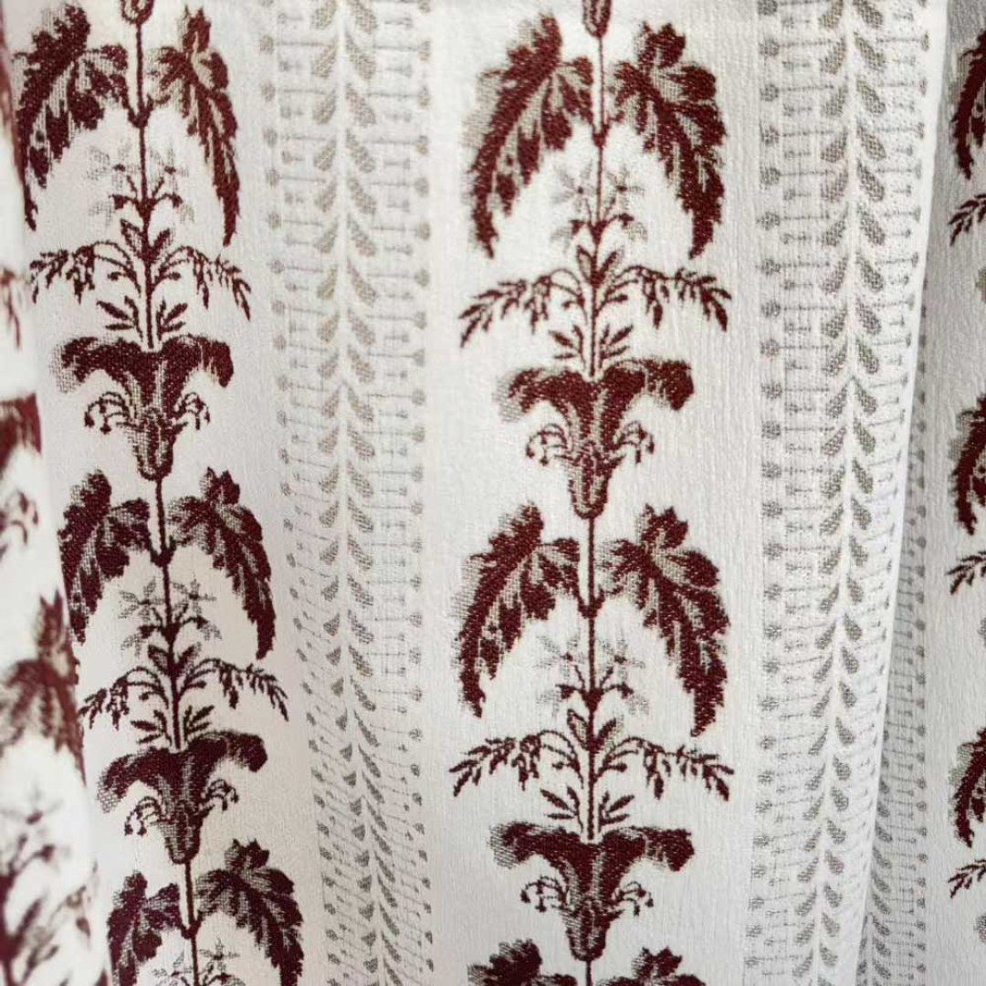 Classic elegance meets cozy texture in Heirloom Stripe. This richly woven heavy chenille fabric features a vertical botanical motif with timeless charm. Its substantial weight provides excellent drape and light filtering, perfect for creating a refined, traditional look in any room.