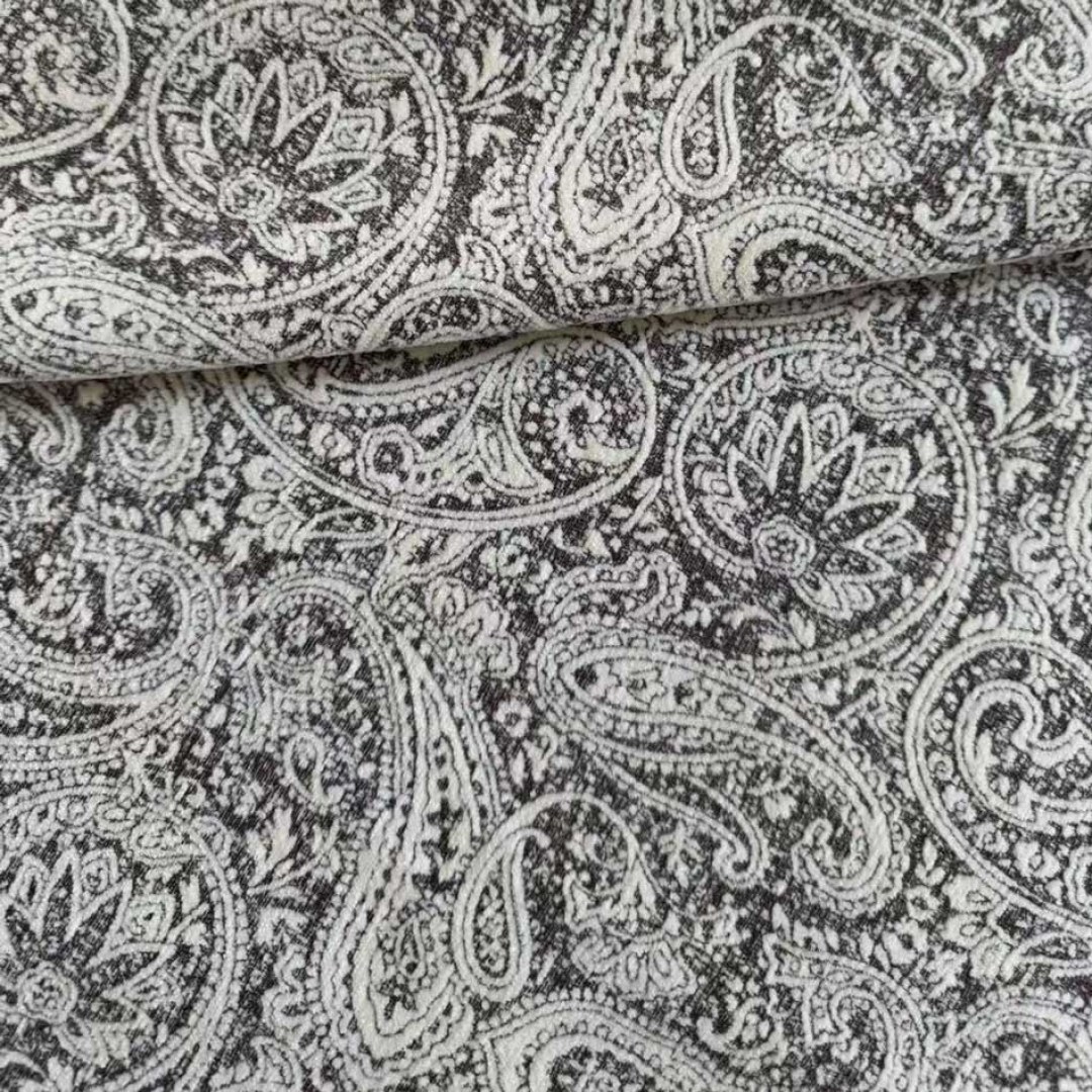 Midnight Paisley Dark Brown Floral Chenille Curtain
