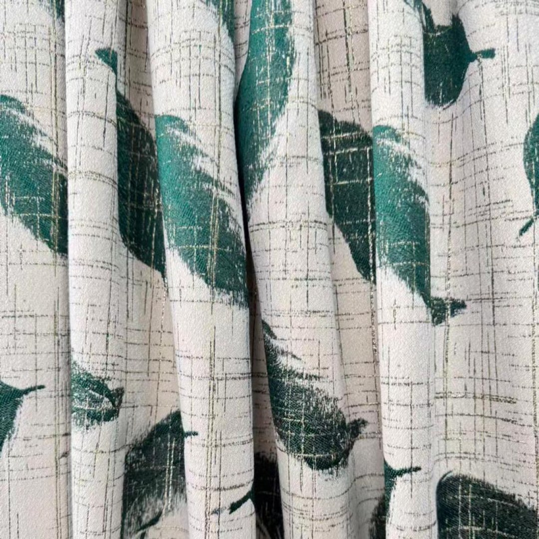Featuring an intricate feather motifs accented by subtle cross-hatch lines, this luxurious curtain blends abstraction with artistry. The flowing, organic motifs deliver a modern yet elegant aesthetic, making it an ideal choice to elevate contemporary interiors in need of refined visual interest.