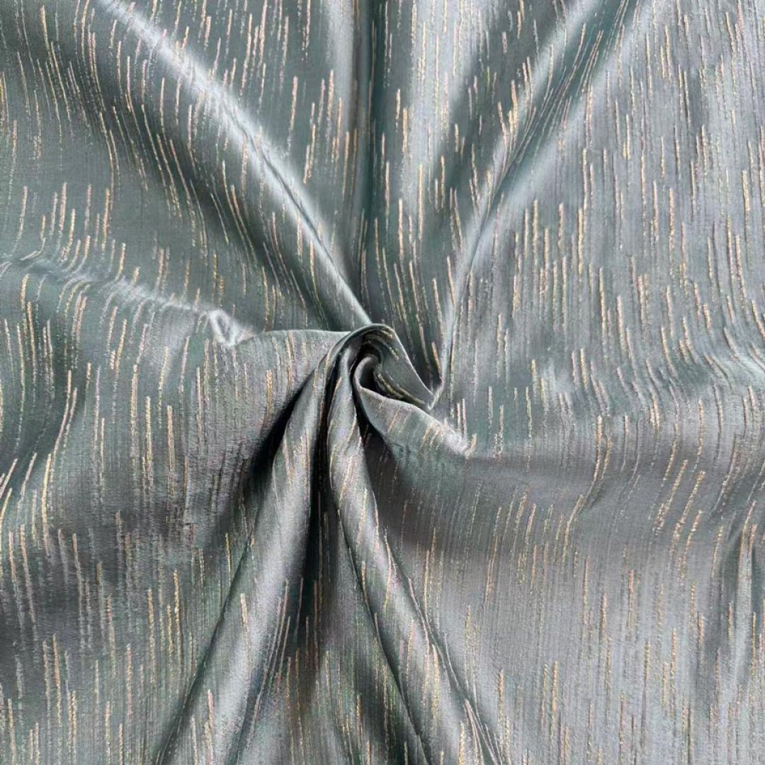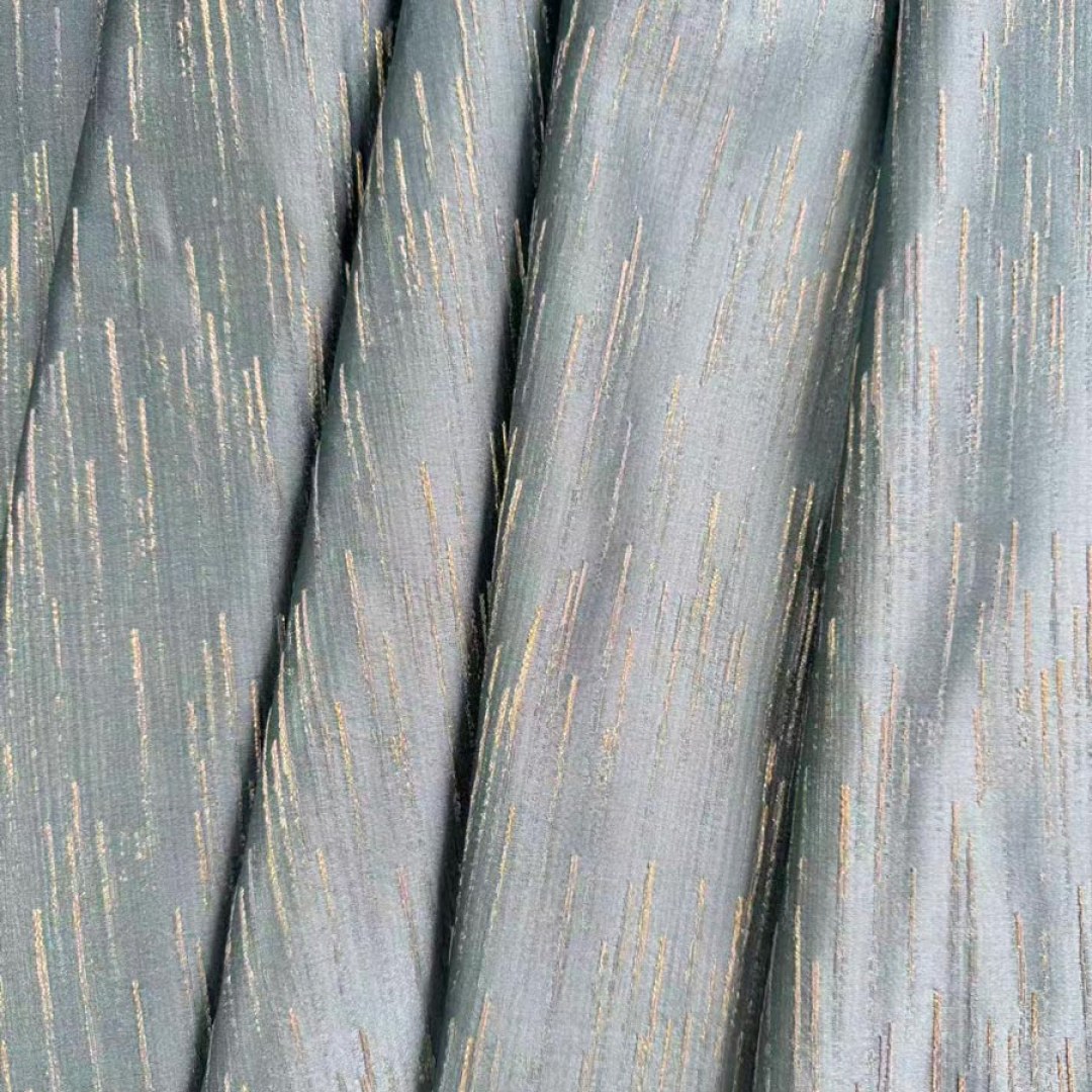 Bring contemporary elegance into your home. This fabric features refined vertical stripes accented with a subtle metallic sheen, creating a look that is both sophisticated and versatile.