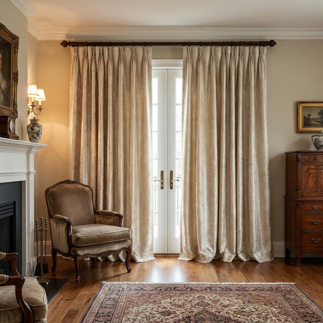 Opulent Floral Luxury Jacquard Satiny Beige Cream Damask Curtain