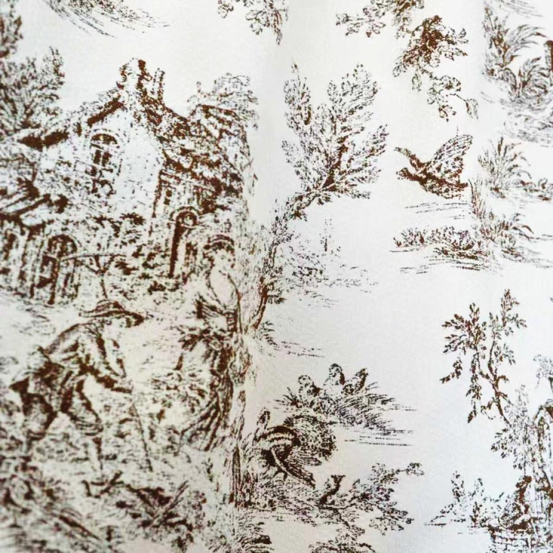 Amour Pastorale Brown Toile de Jour Chenille Curtains
