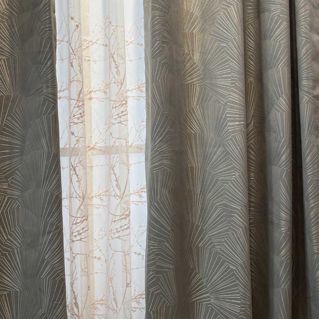 Inspired by the timeless elegance of ginkgo leaves, this fabric blends botanical beauty with Art Deco geometry. Radiating metallic threads evoke nature’s fan shape in a luxurious, structured form.