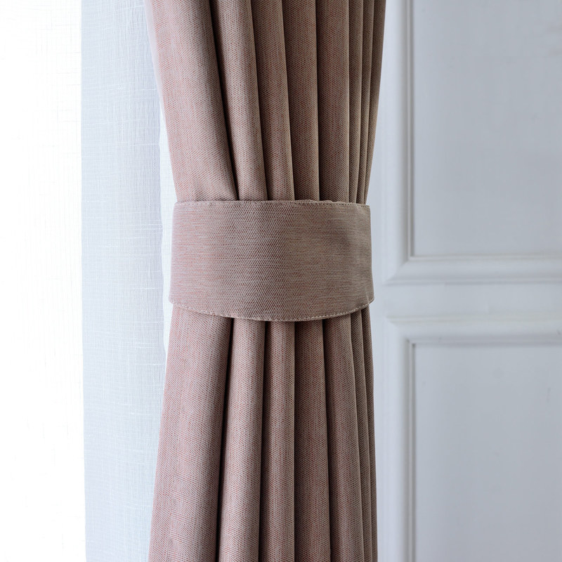 This soft touch fabric is a blackout material and lends itself from 85% to 95% blackout effect without using a second lining. The darker color you choose the better the blackout effect you can get.
