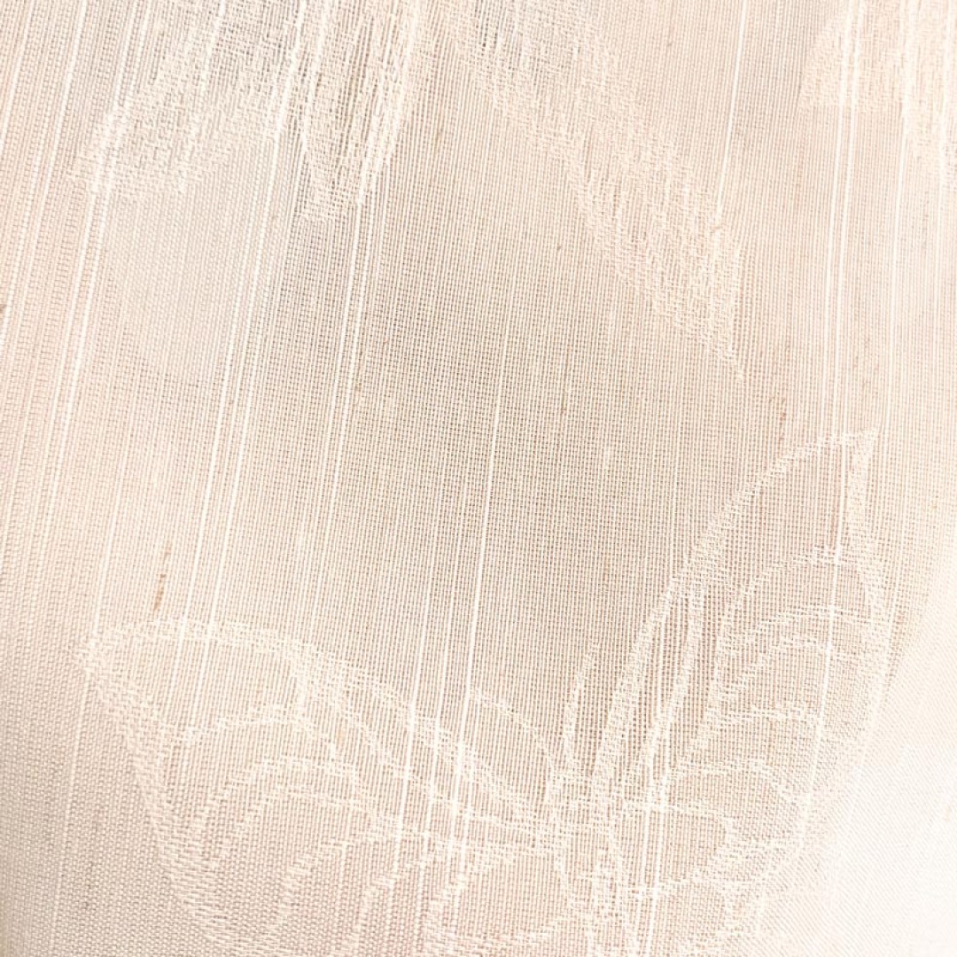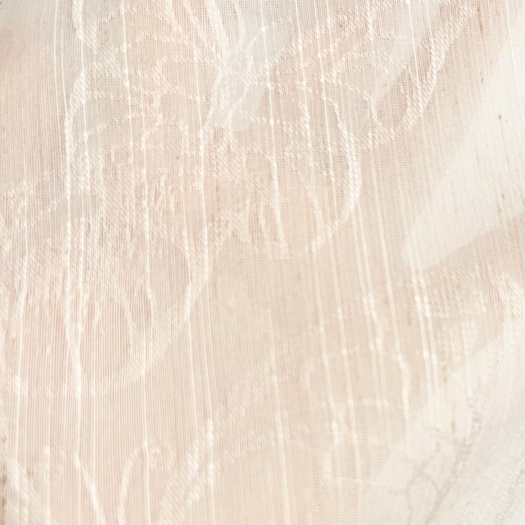 Delicate ivory striped voile adorned with barely-there woven butterflies that appear to float. Airy and luminous, it softly filters sunlight, sending gentle winged shadows dancing across the room with every breeze.