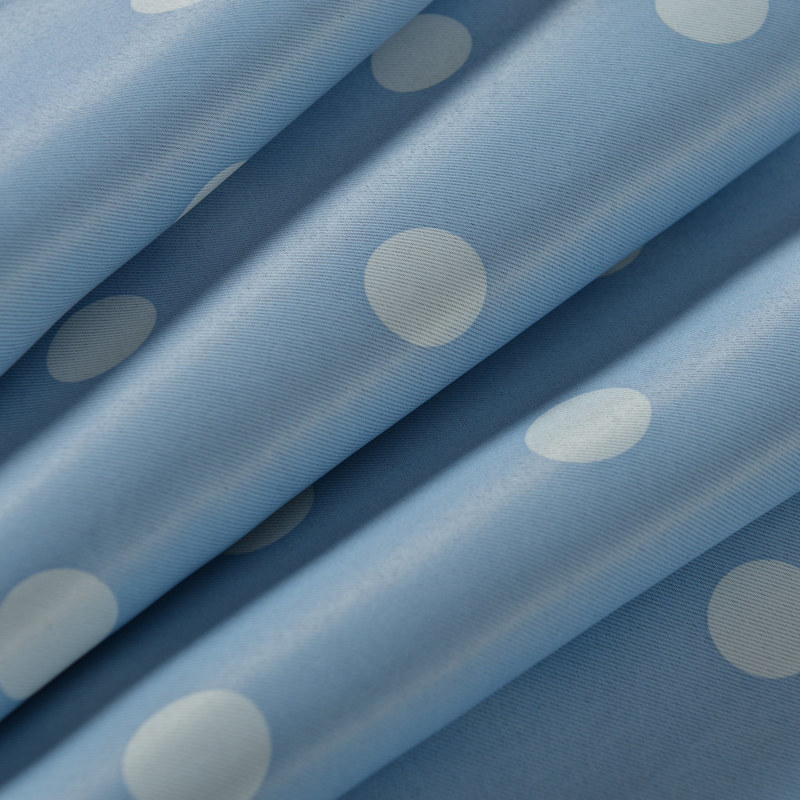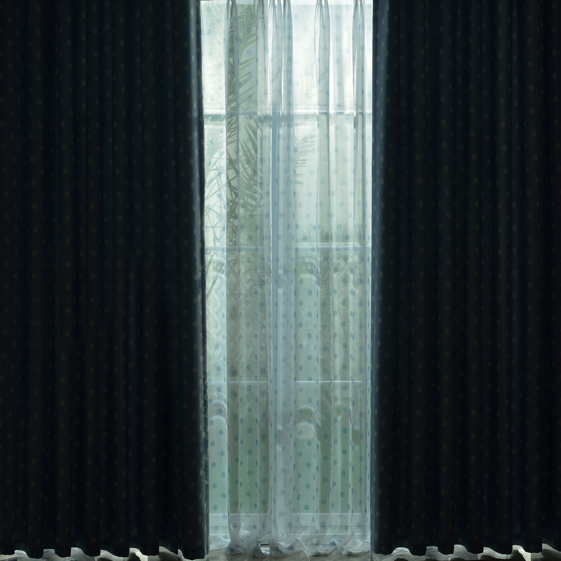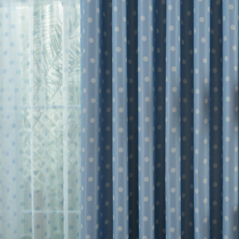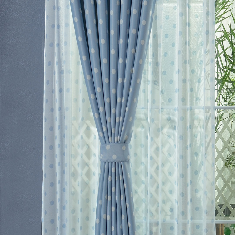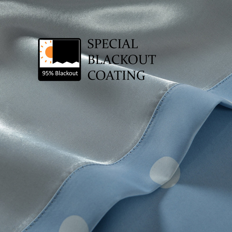 Le rideau à pois bleu occultant possède un revêtement spécial qui bloque la lumière de pénétrer (sans doublure).