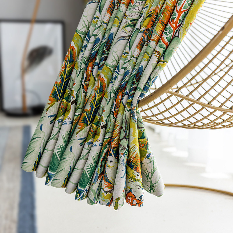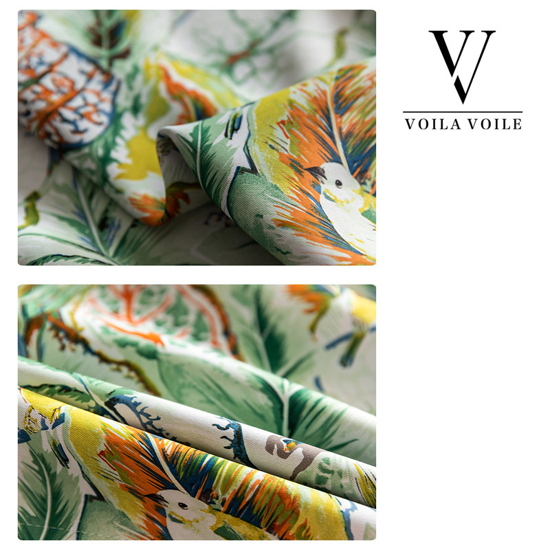 L'imprimé capture véritablement la beauté des fleurs en éclosion, avec des oiseaux se cachant enjoueusement parmi le feuillage. Le jaune, le bleu, l'orange et les verts vibrants, éparpillés sur ces rideaux, attirent vraiment l'attention sur les détails impressionnants et affirment un style audacieux.