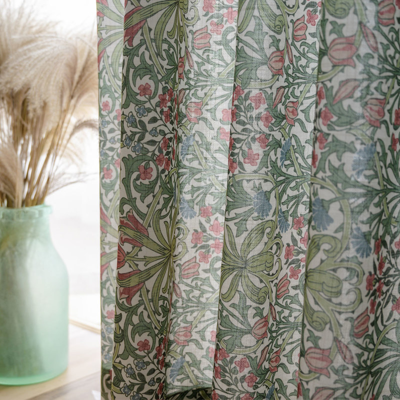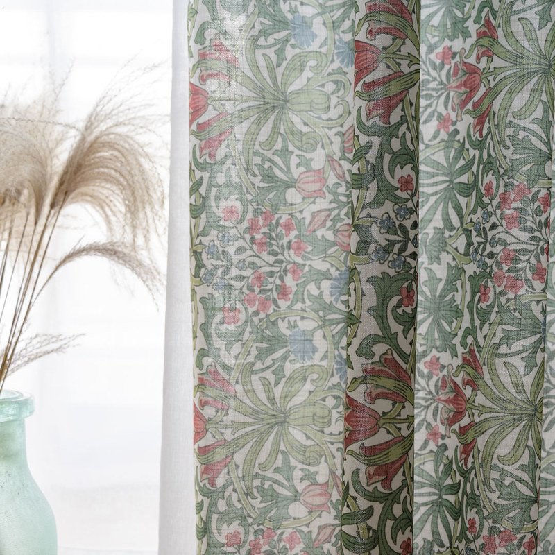 Inspiré du mouvement Arts and Crafts, ce tissu présente une disposition élégante de motifs floraux épanouis et de vrilles feuillues dans un motif doux et symétrique. Rappelant les créations de William Morris, il apporte une élégance intemporelle et une beauté naturelle à tout intérieur. Nos rideaux sur mesure sont méticuleusement confectionnés pour répondre à vos préférences spécifiques. Ils sont disponibles dans une variété de styles de plis pour s'adapter à vos goûts, notamment le galon plissé, l’œillet, le plis chouchou, le plis tailleur, le plis boîte inversé, le patin à œillets, le patin arrière, la poche à tringle et le rideau à vague. Découvrez comment les rideaux floraux peuvent moderniser n’importe quelle pièce.