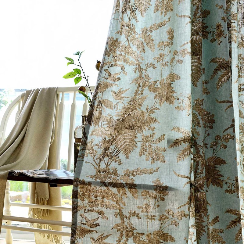 Faites une impression avec ces rideaux rétro de style toile de Jouy ornés d'oiseaux et de motifs floraux.