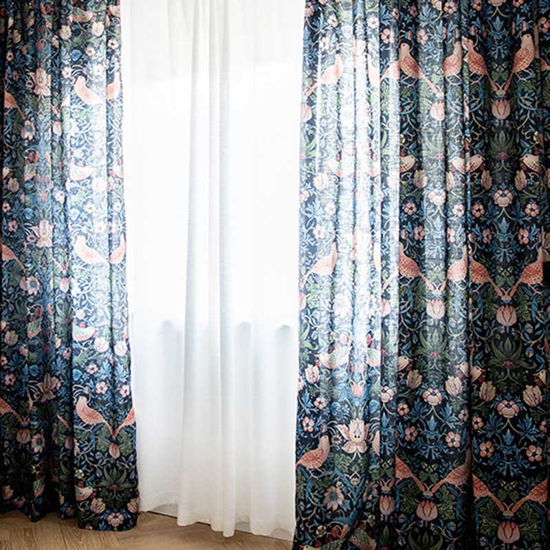 « Strawberry Thief » de William Morris est un motif Arts and Crafts très apprécié, mettant en scène des oiseaux dérobant des baies au milieu d’un feuillage richement détaillé. Ce motif intemporel apporte charme historique, couleurs riches et élégance artisanale à votre intérieur – idéal pour une décoration classique ou éclectique.