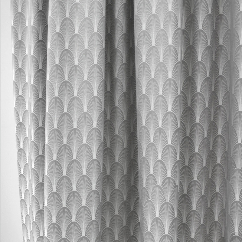 Ces classiques rideaux de style Art Déco au motif coquillage en gris Morandi et argent compléteront n'importe quelle pièce de votre choix et constitueront un élément décoratif audacieux.
