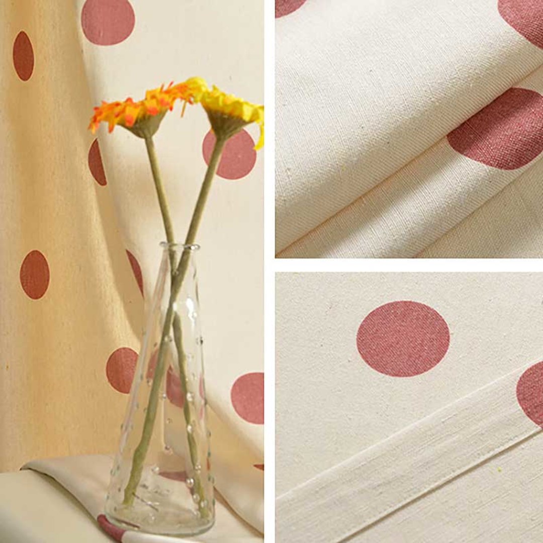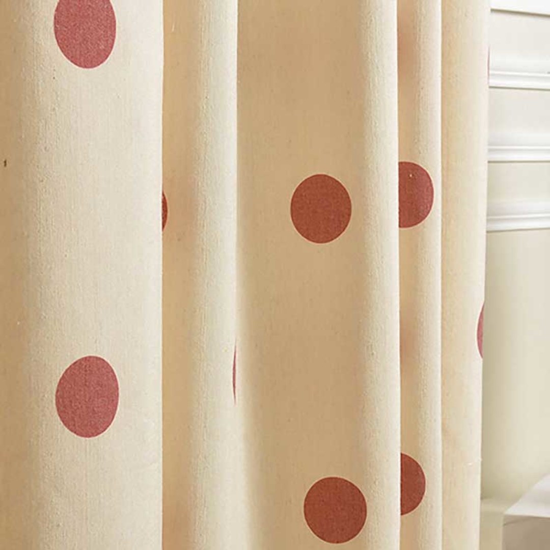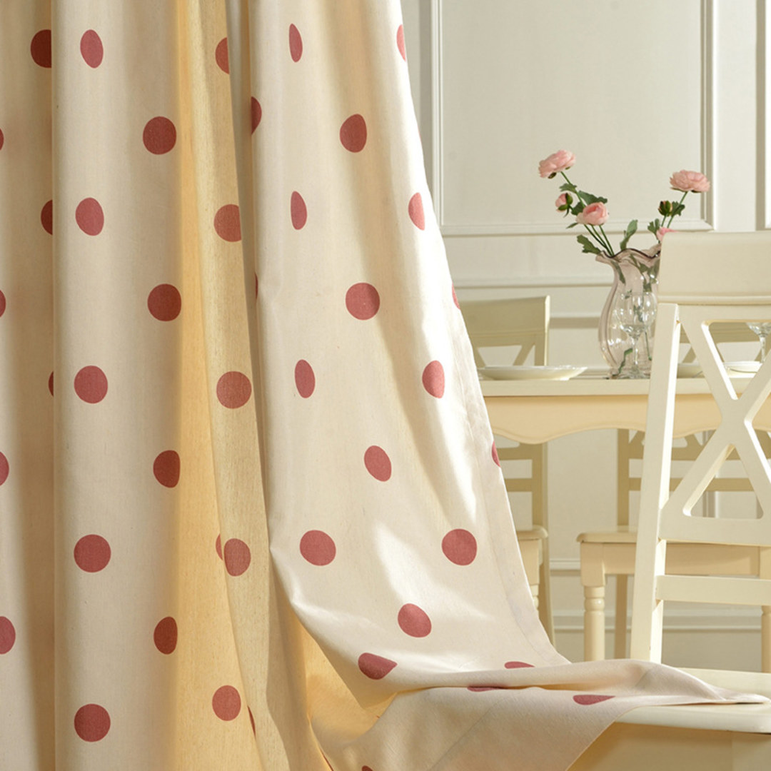 Classique motif à pois imprimé sur tissu aspect lin crème. Ces jolis rideaux sont le complément idéal pour la chambre de vos enfants. Nos rideaux sur mesure sont créés selon vos exigences exactes et sont disponibles avec différents styles de tête : œillets, pattes de fixation, plissé simple, plissé double, plissé à triple ourlet ou rideaux à vague. Commandez des voilages, des embrasses et des coussins assortis pour améliorer l'ensemble de l'environnement. Découvrez comment les rideaux à pois peuvent moderniser n'importe quelle pièce.