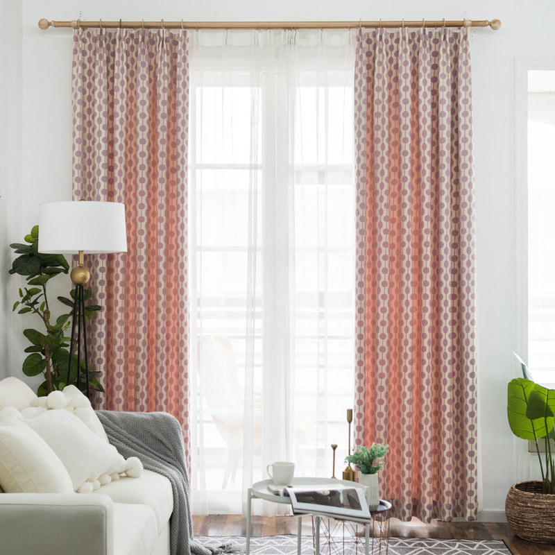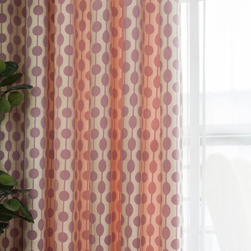 Lignes Perlées Rose Pâle Violet Pois et Rayures Rideau en Chenille