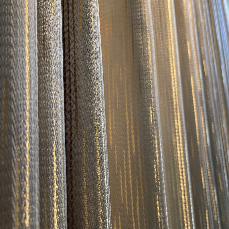Adoptez un nouveau look audacieux avec nos rideaux rayés champagne et or scintillants.