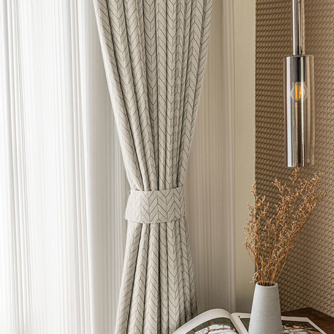 Savourez l'allure luxueuse de nos rideaux à chevrons Art Déco, une fusion harmonieuse de sophistication moderne et d'élégance intemporelle. Plongez dans l'exquise beauté de ces rideaux, où le motif à chevrons complexe rayonne avec opulence et une touche contemporaine.