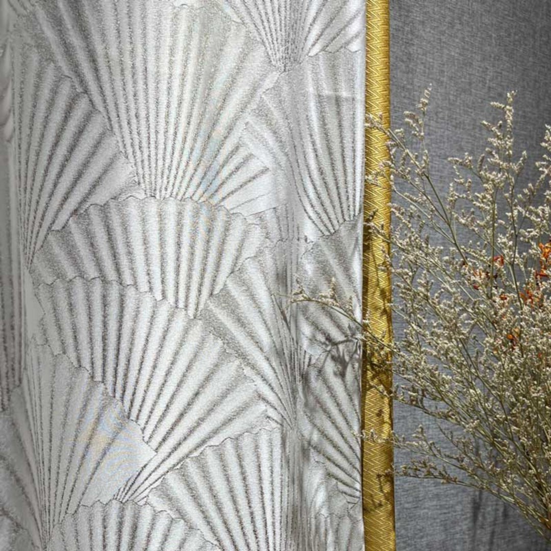 Obtenez un look luxueux, moderne et sophistiqué avec ces rideaux orientaux à motifs de ventail Art Déco crème. Nos rideaux sur mesure sont méticuleusement confectionnés pour répondre à vos préférences spécifiques. Ils sont disponibles dans une variété de styles de plis pour s'adapter à vos goûts, notamment le galon plissé, l'œillet, le plis chouchou, le plis tailleur, le plis boîte inversé, le patin à boucle, le patin arrière, la poche à tringle et le rideau à vague. Les rideaux Art Déco – le moyen simple d'ajouter du glamour et du luxe à votre intérieur.