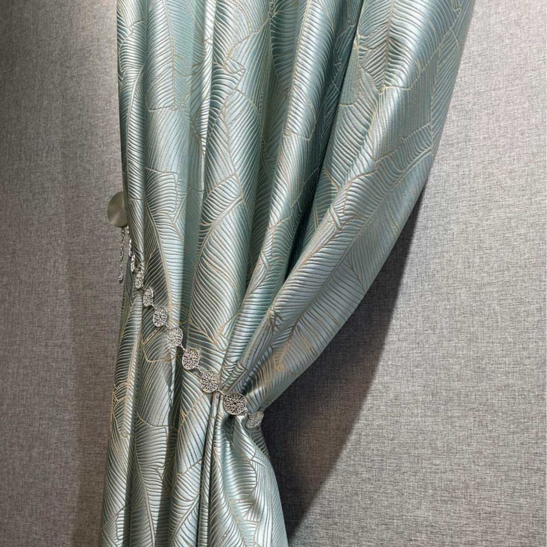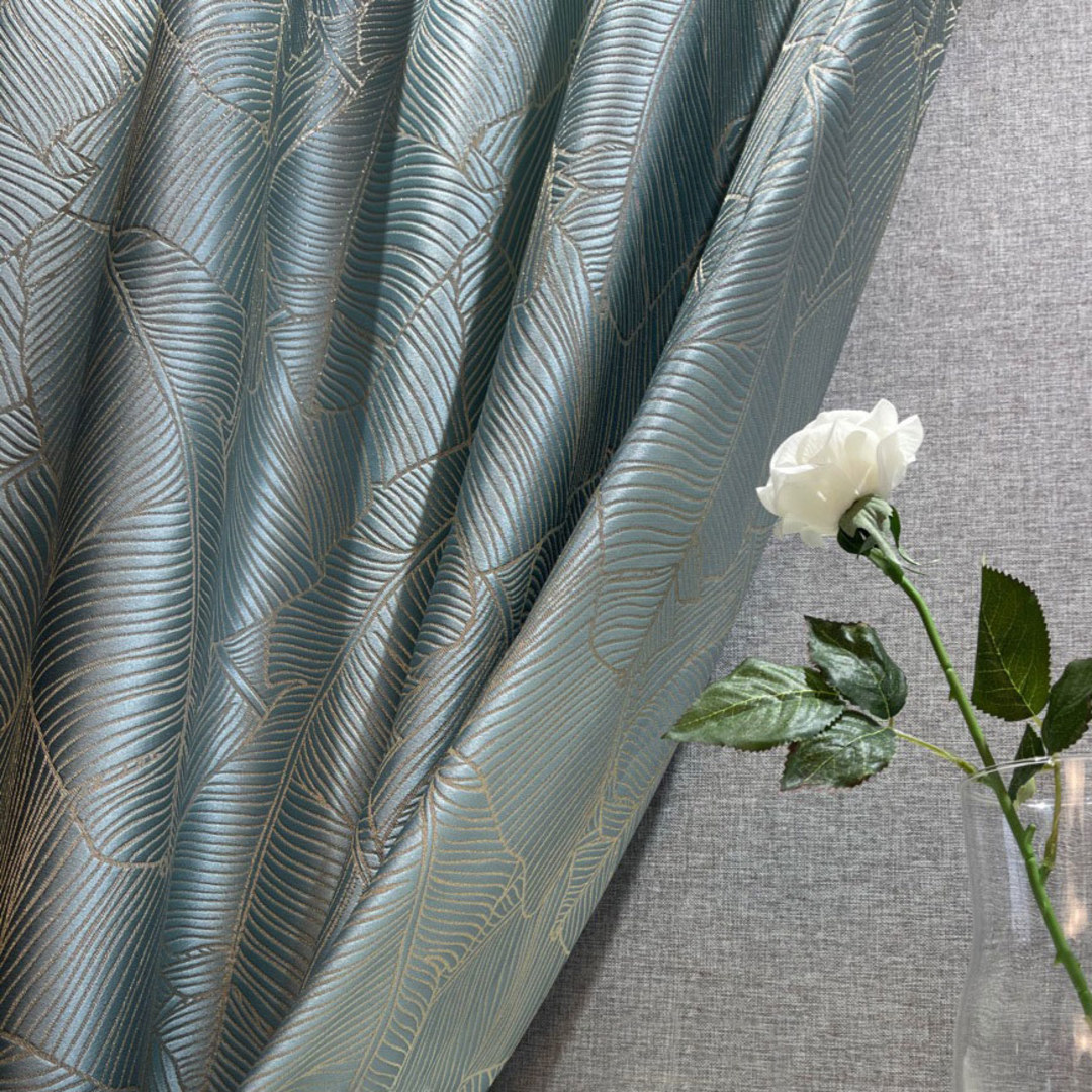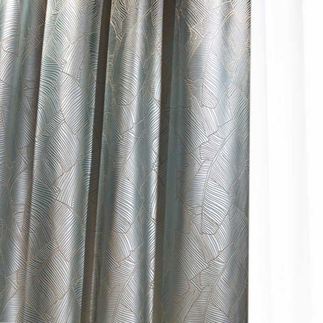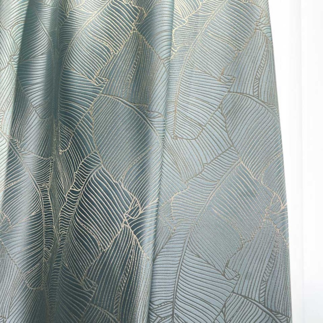 Entrez dans un bonheur tropical avec ces superbes rideaux à motifs de feuilles de bananier. Des détails dorés créent un scintillement accrocheur qui ajoutent un détail parfait à votre intérieur. Nos rideaux sur mesure sont méticuleusement confectionnés pour répondre à vos préférences spécifiques. Ils sont disponibles dans une variété de styles de tête, pour s'adapter à vos goûts, notamment à plis crayon, à œillets, à plis pincés, à plis tailleur, à plis inversés, à patte, à coulisse, à poche à tringle et rideaux à vague. Découvrez comment les rideaux tropicaux peuvent moderniser n'importe quelle pièce.