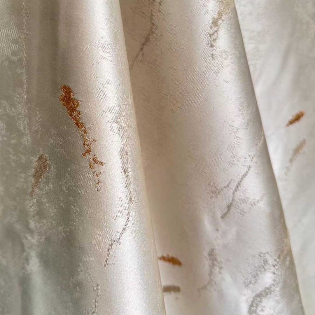 Motif asiatique classique revisité avec un look moderne ! Le tissu satiné et la couleur crème dorée illumineront n’importe quelle pièce de votre choix. Nos rideaux sur mesure sont confectionnés selon vos exigences exactes et sont disponibles avec différents styles de tête : œillets, pattes de fixation, plis crayon, plis tailleur, plis pincés, plis inversés, poche à tringle et rideaux à vagues. Découvrez comment les rideaux abstraits peuvent moderniser n’importe quelle pièce.
