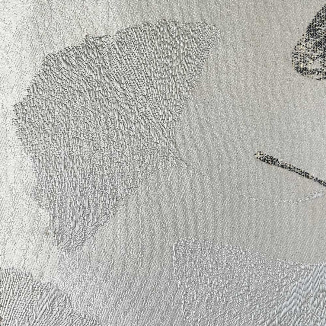 Asian Grove Luxury Jacquard Ginkgo Leaf Patterned Silvery Grey Curtain with Gold Details