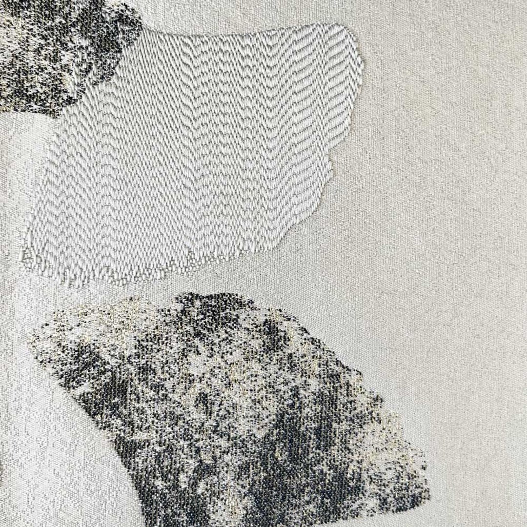 Asian Grove Rideaux de Luxe en Jacquard à Motif Feuilles de Ginkgo Gris Argenté avec Détails Dorés