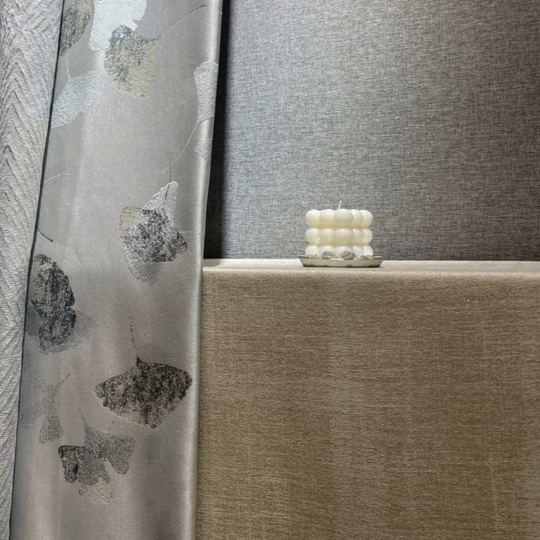 Ce design moderne agrémentera n'importe quelle pièce de votre choix et constituera un élément de décoration audacieux. Le motif de feuilles de ginkgo, les textures riches et les détails dorés étincelants sont élégants, et la couleur gris argenté apparaît soignée. Nos rideaux sur mesure sont méticuleusement confectionnés pour répondre à vos préférences spécifiques. Ils sont disponibles dans une variété de styles de plis pour s'adapter à vos goûts, notamment le plis crayon, le passant œillet, le plis festonné, le plis tailleur, le plis boîte inversé, le patin, le patin arrière, la poche à tringle et le rideau à vague. Découvrez comment les rideaux à motifs de feuilles peuvent moderniser n'importe quelle pièce.