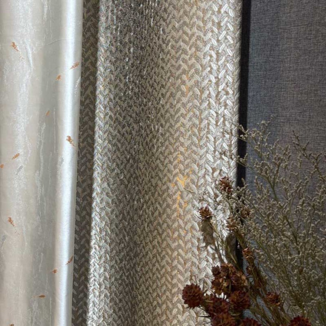 Apportez du luxe à votre intérieur avec ces rideaux en jacquard à motif grain couleur moka. Le matériau chatoyant et les détails dorés sublimeront n'importe quelle pièce de votre choix.