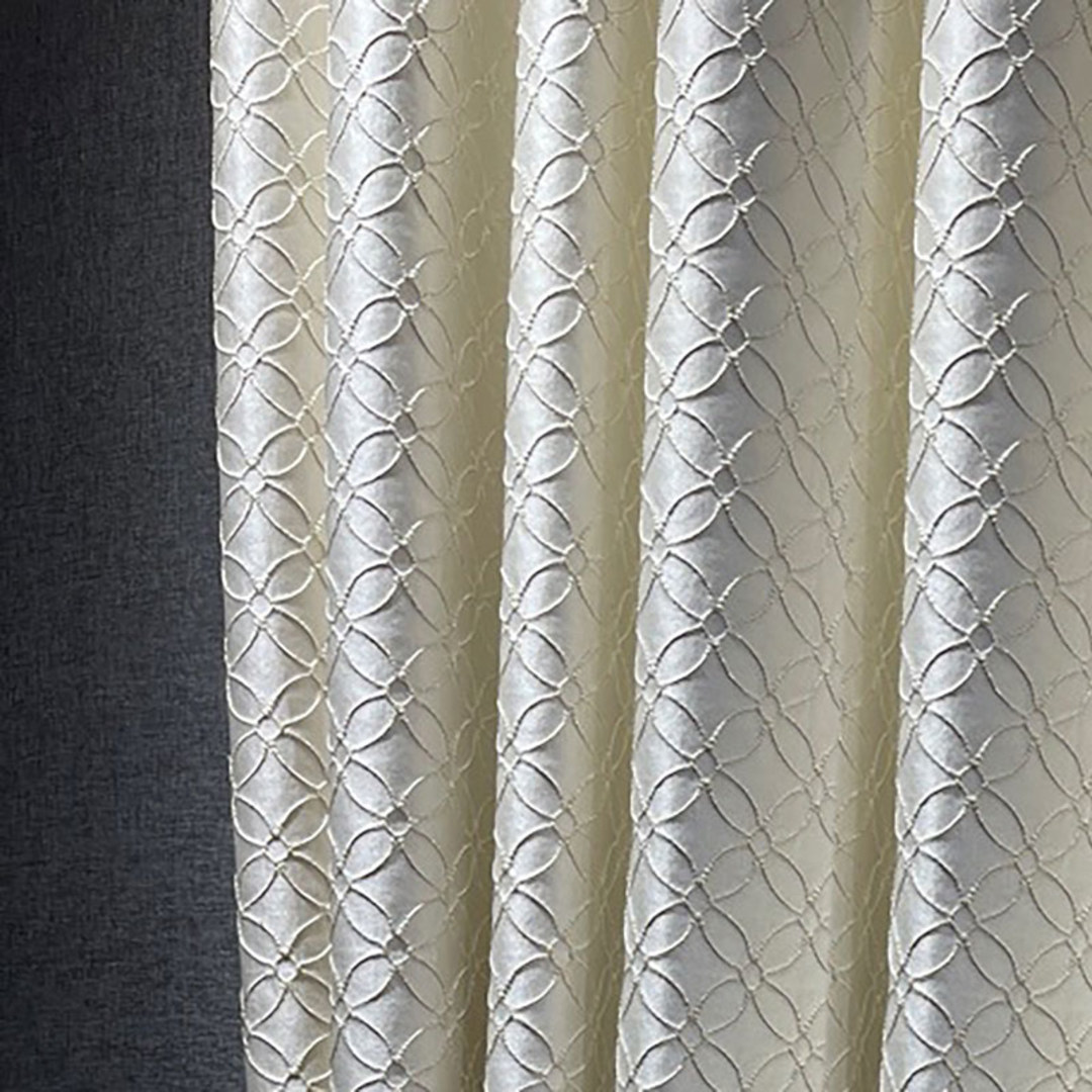 Belle Fleur 3D Jacquard Crème beige Rideau arabe avec des détails dorés