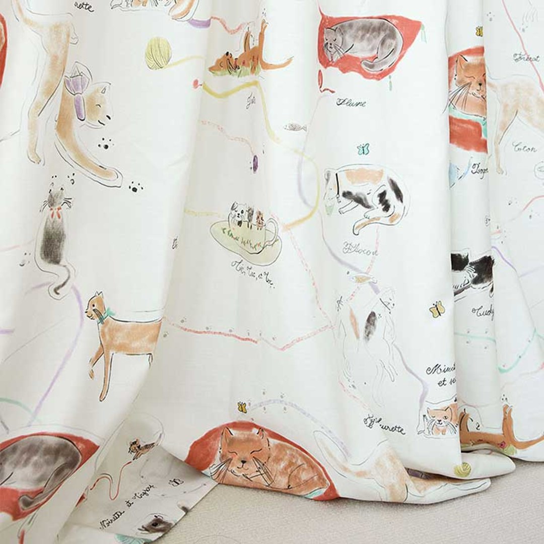 Naïf et caricatural motif peint à la main représentant les activités quotidiennes de joyeux chatons. Ces rideaux fantaisistes et adorables sont parfaits non seulement pour les enfants mais aussi pour tous les amoureux des chats. Nos rideaux sur mesure sont méticuleusement confectionnés pour répondre à vos préférences spécifiques. Ils sont disponibles dans une variété de styles d’en-tête pour s’adapter à vos goûts, notamment à plis crayon, à œillets, à plis pincés, à plis tailleur, à plis inversés, à patte, à languette arrière, à poche à tringle, rideaux à vagues et rideaux de porte.Découvrez davantage nos amusants rideaux animaux.