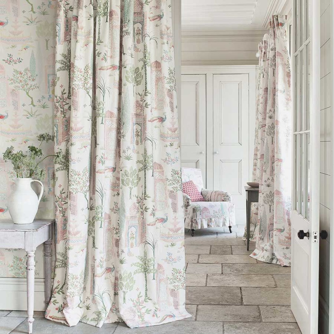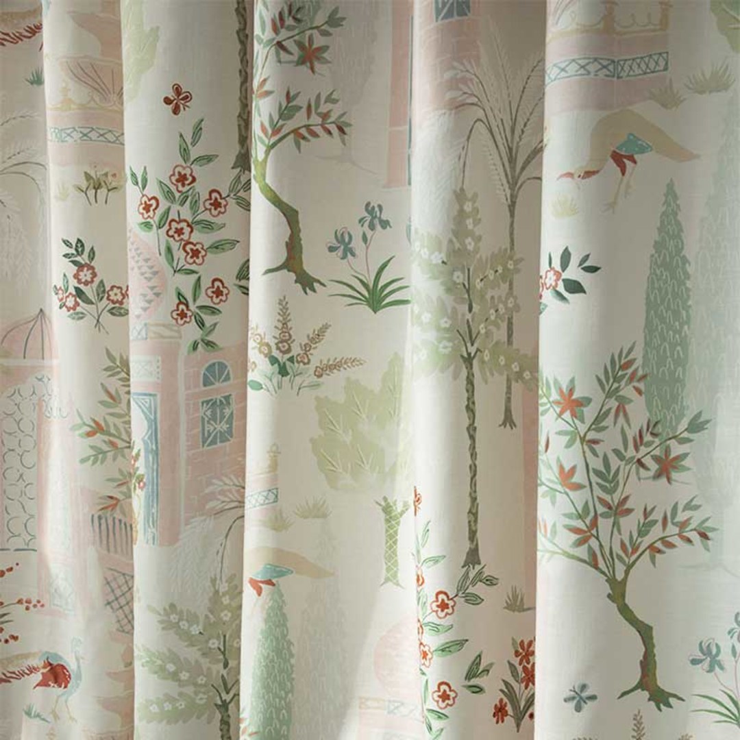 Inspiré des jardins persans exquis, ce motif peint à la main présente une architecture perse classique, des fontaines, des arbres exotiques, des fleurs et des paons sur un velours doux et soyeux. Nos rideaux en velours sur mesure sont méticuleusement confectionnés pour répondre à vos préférences spécifiques. Ils sont disponibles dans une variété de styles de tête, pour s'adapter à vos goûts, notamment le galon froncé, l’œillet, le plis chouchou, le plis tailleur, le plis boîte inversé, le passe-tringle à patte, le passe-tringle à boucle, la poche à tringle et le rideau à vague. Découvrez d’autres rideaux en velours floral exquis.
