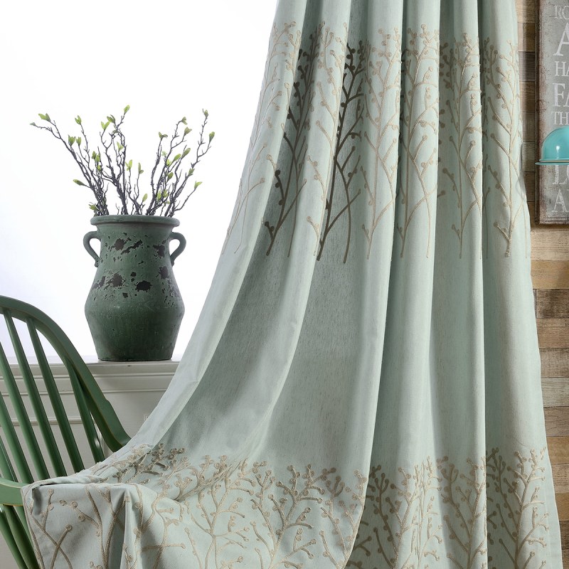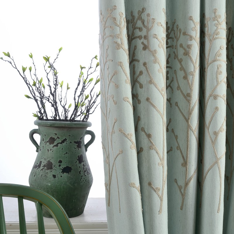 Les couleurs contrastées de turquoise pastel et de marron clair apporteront une élégance florale toute l’année à n’importe quelle fenêtre et sont confectionnées à partir de tissu lin moderne avec des accents brodés.