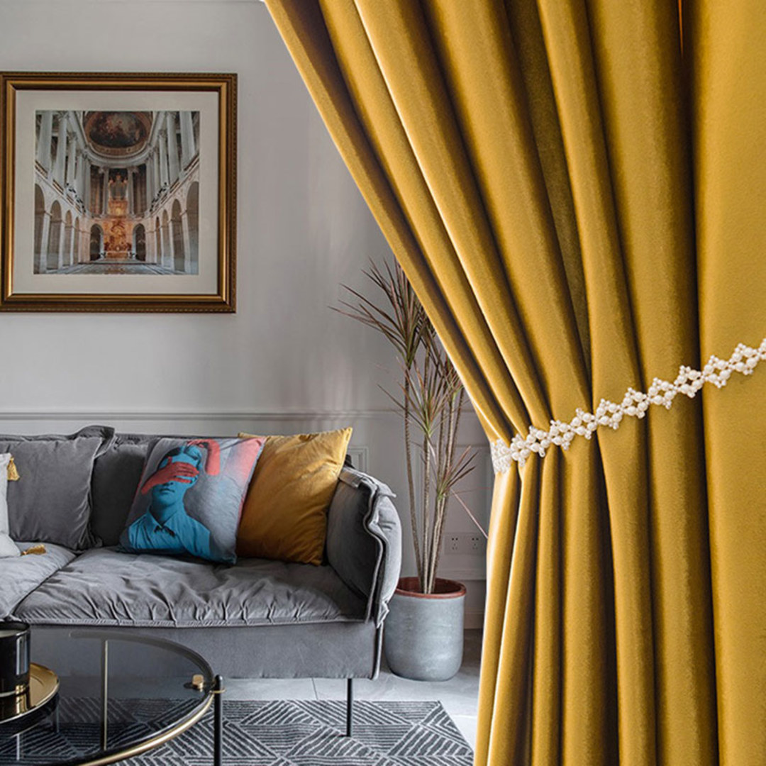Découvrez comment les rideaux en velours doré/jaune peuvent moderniser n'importe quelle pièce.