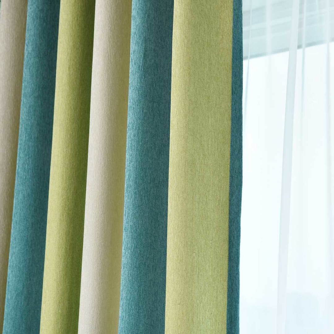 Fabriqués à partir de chenille épaisse de haute qualité, ces rideaux à rayures audacieuses vertes et bleues présentent une texture veloutée, un poids lourd et une douceur agréable. La caractéristique unique double face les rend parfaits pour séparer les pièces et pour les rideaux de cubicules. Nos rideaux sur mesure sont adaptés à vos besoins spécifiques en matière de fenêtres et sont disponibles dans un choix de styles de tête - œillets, patte de fixation, plissé simple, plissé façonné, plissé pincé, plissé inversé, poche à tringle et rideaux à vagues. Découvrez comment les rideaux double face peuvent moderniser n'importe quelle pièce.