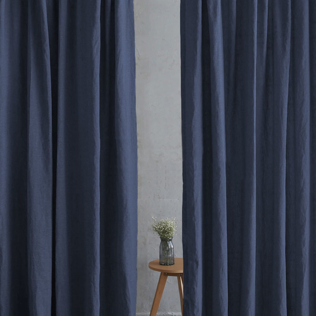Chic décrépi Marine bleu nuit Rideau en lin 100%