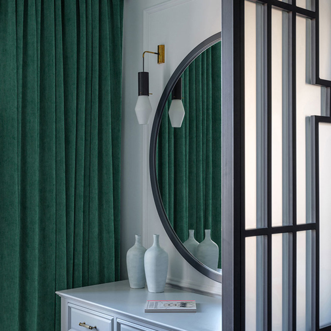 Exquis Mat crée des espaces de vie sophistiqués et constitue un moyen efficace d'introduire l'élégance et la texture dans votre intérieur. Ces rideaux en chenille magnifiquement doux sont parfaits pour les salons luxueux et les chambres de rêve. Le chenille est également plus durable que le velours, malgré son aspect luxueux. Nos rideaux sur mesure sont méticuleusement confectionnés pour répondre à vos préférences spécifiques. Ils sont disponibles dans une variété de styles de tête, pour s'adapter à vos goûts, notamment le galon plissé, l'œillet, le plissé pincé, le plissé tailleur, le plissé boîte inversé, le patin, le patin arrière, la poche à tringle et le rideau à vague. Découvrez comment les rideaux en chenille verts peuvent moderniser n'importe quelle pièce.