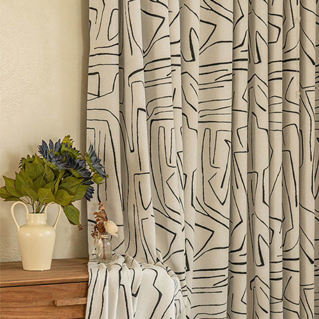 Réalisés à partir de chenille de haute qualité, ces rideaux modernes noirs et blancs à motifs de graffitis linéaires présentent une texture élégante, un poids conséquent et une douceur agréable.