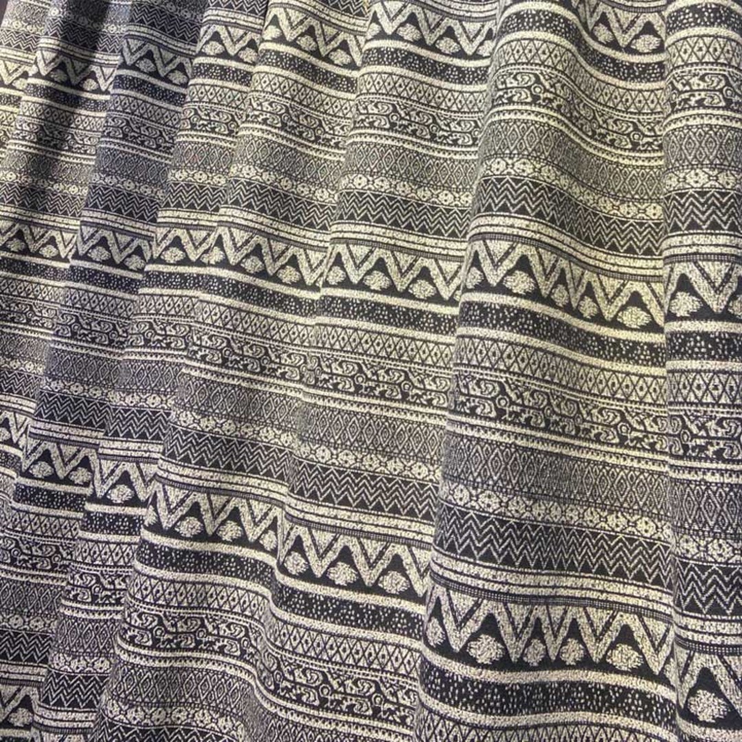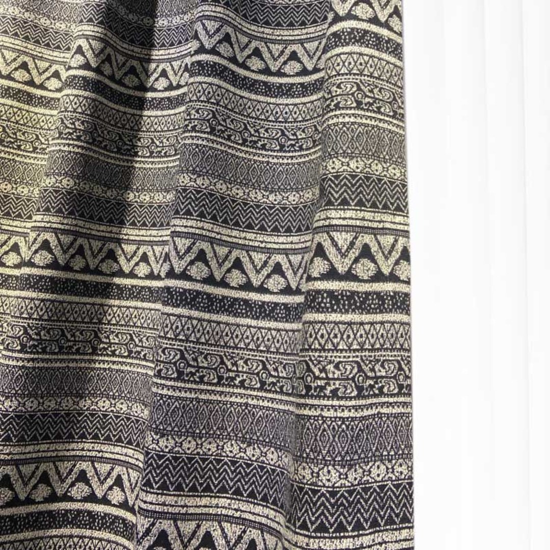 Ces rideaux de style bohème créent une pièce de caractère grâce à leurs motifs géométriques complexes et leurs rayures horizontales.