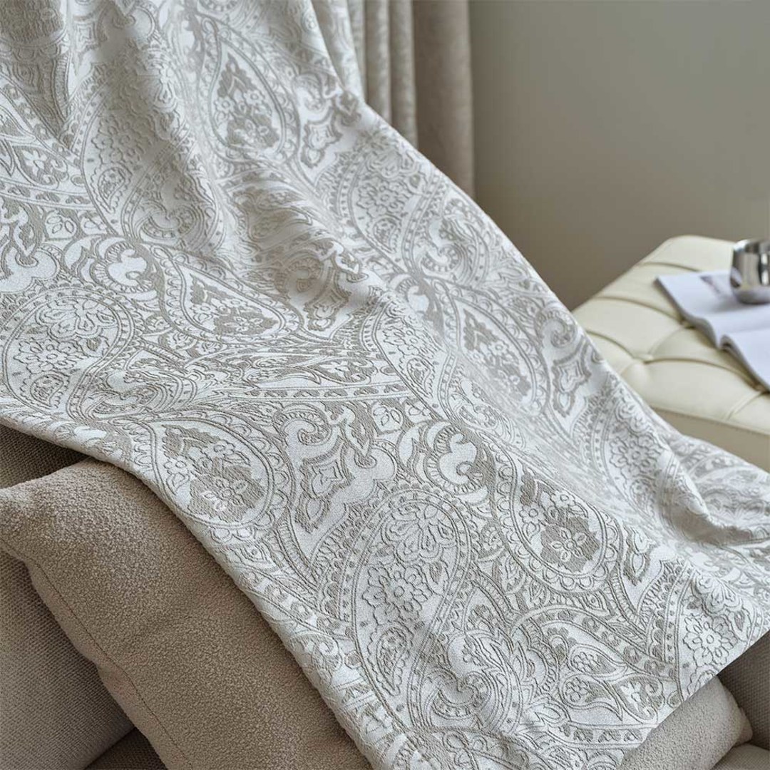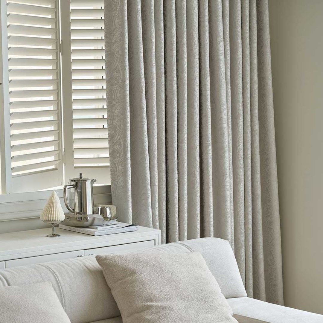 Ces luxueux rideaux jacquard créent une pièce de caractère grâce à leur douce teinte crème et leurs motifs floraux païley organiques. Nos rideaux sur mesure sont méticuleusement confectionnés pour répondre à vos préférences spécifiques. Ils sont disponibles dans une variété de styles de tête, pour s'adapter à vos goûts, notamment galon plissé, œillets, plissé pincé, plissé tailleur, plissé boîte inversé, patte à nouer, coulisse arrière, poche à tringle et rideau à vague. Commandez des embrasses et des coussins assortis pour sublimer l'ensemble de la pièce. Découvrez comment les rideaux païley peuvent moderniser n'importe quelle pièce.