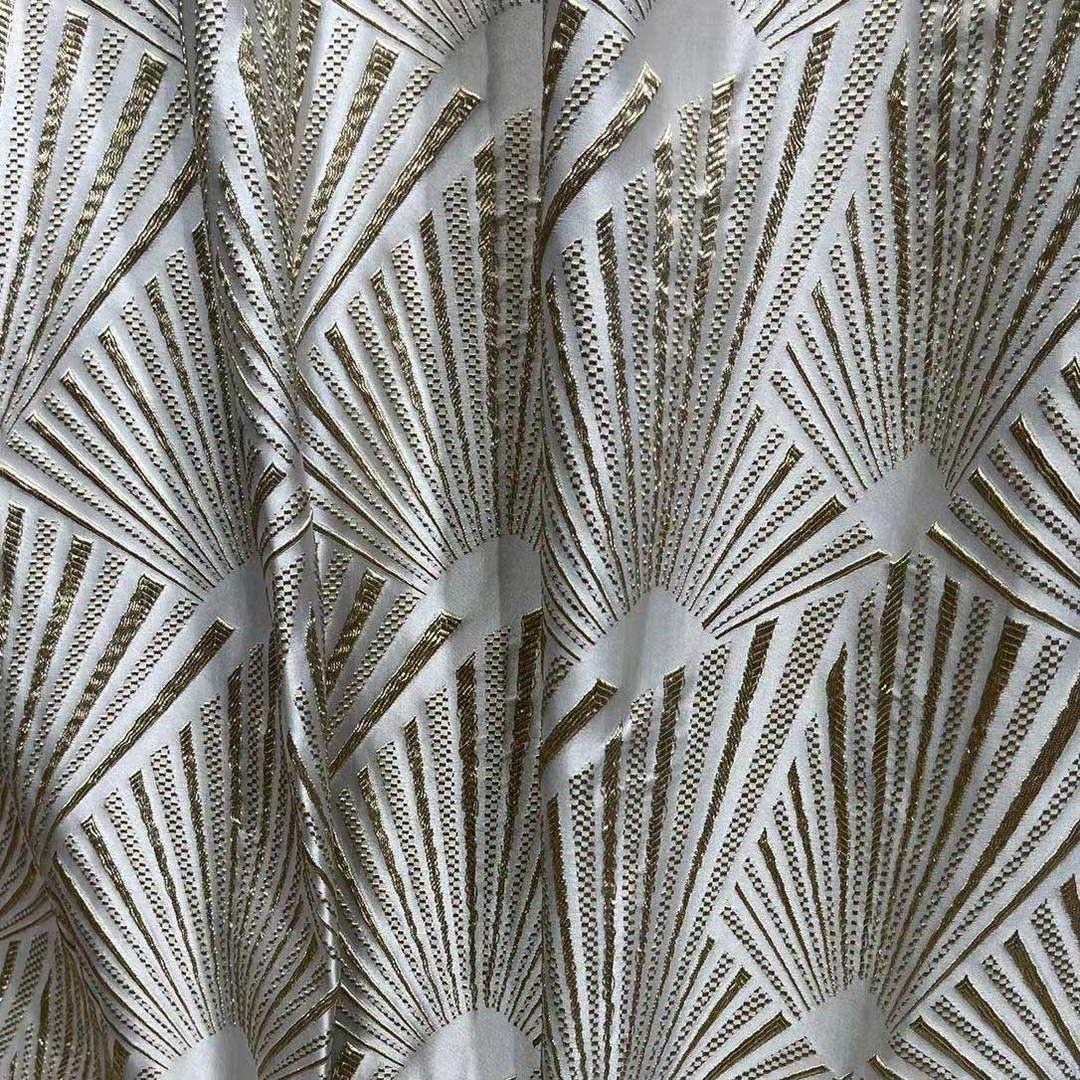 Ces rideaux jacquard 3D classiques de style Art déco, à motifs éventail crème et or, rehausseront n'importe quelle pièce de votre choix et constitueront un élément décoratif audacieux. Nos rideaux sur mesure sont méticuleusement confectionnés pour répondre à vos préférences spécifiques. Ils sont disponibles dans une variété de styles d'en-tête pour s'adapter à vos goûts, notamment à plis crayon, à œillets, à plis pincés, à plis tailleur, à plis inversés, à patte, à coulisse, à poche à tringle et rideaux à vague. Les rideaux Art déco – des moyens simples d'ajouter glamour et luxe à votre intérieur.