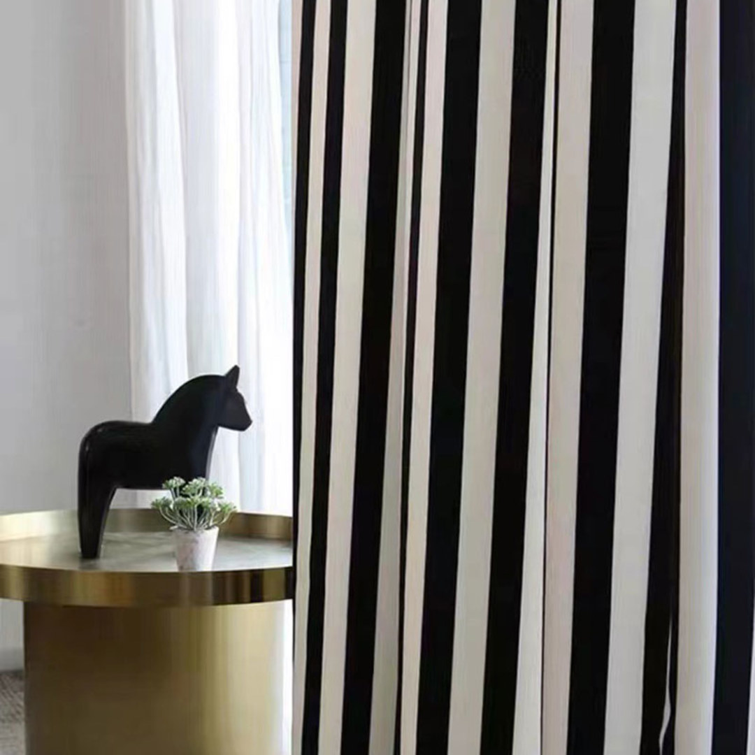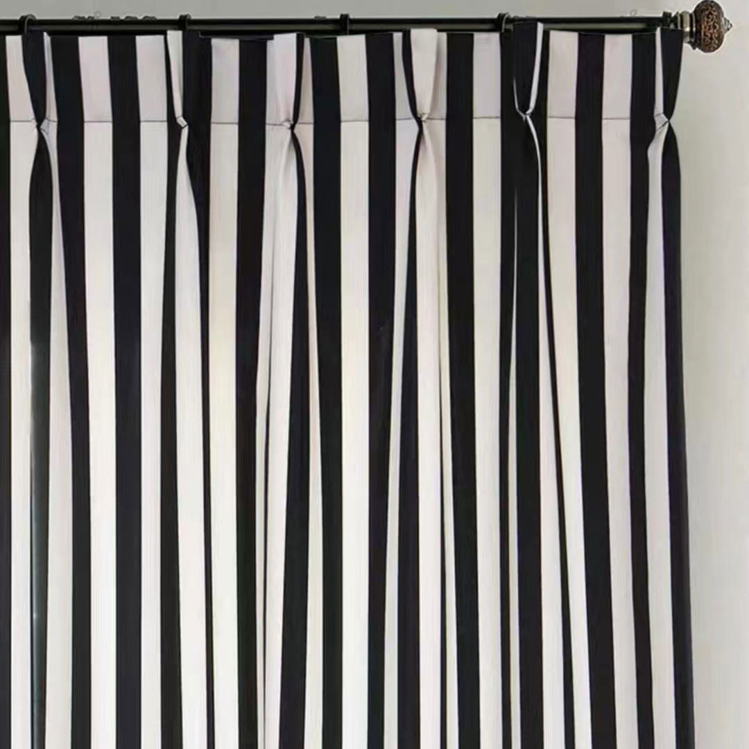 Fabriqués à partir de chenille de haute qualité, ces rideaux rayés modernes noir et blanc présentent une texture élégante, un poids lourd et une douceur agréable. La caractéristique unique double face les rend parfaits pour séparer les pièces et pour les rideaux de cubicules. Nos rideaux sur mesure sont méticuleusement confectionnés pour répondre à vos préférences spécifiques. Ils sont disponibles dans une variété de styles de tête pour s'adapter à vos goûts, notamment le galon plissé, l’œillet, le plissé pincé, le plissé tailleur, le plissé boîte inversé, le patin à boucle, le patin arrière, la poche à tringle et le rideau à vague. Découvrez comment les rideaux rayés peuvent moderniser n’importe quelle pièce. NOTE : Un tissu double face ne signifie pas nécessairement que les deux côtés ont une apparence identique. Au lieu de cela, les deux côtés sont de haute qualité et peuvent être utilisés efficacement pour la fabrication de rideaux. Veuillez commander des échantillons GRATUITS pour voir et sentir le tissu.
