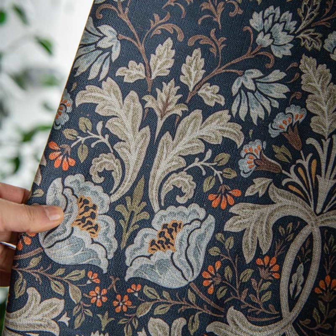 Sublimez votre intérieur avec les rideaux à motifs floraux bleu marine et pétales azur en lin. Le motif floral complexe se déploie avec élégance, combinant des nuances de bleu marine profond avec de délicats pétales azur. Conçus avec une texture façon lin, ces rideaux apportent à la fois sophistication et une touche de nature à votre décoration, créant une ambiance sereine dans n'importe quelle pièce. Nos rideaux sur mesure sont méticuleusement confectionnés pour répondre à vos préférences spécifiques. Ils sont disponibles dans une variété de styles de tête, pour s'adapter à vos goûts, notamment à plis cousus, à œillets, à plis festonnés, à plis tailleur, à plis inversés, à patte, à coulisse cache-fil, à poche à tringle ou rideaux à vague. Découvrez comment les rideaux floraux peuvent moderniser n'importe quelle pièce.