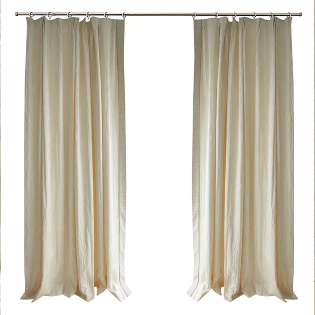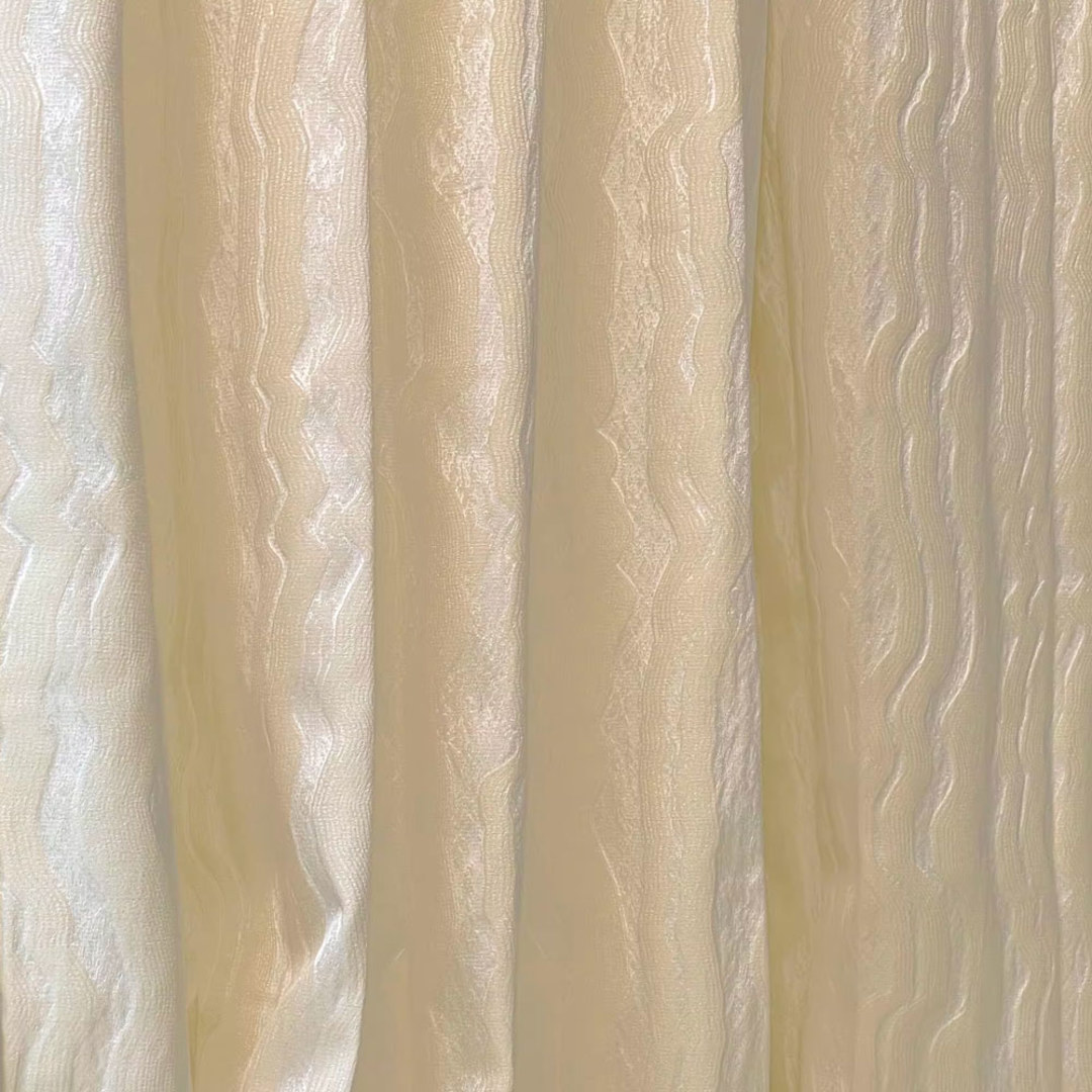 Le rideau au motif unique de vagues et de rayures présente une teinte crème satinée, ajoutant un détail magnifiquement réconfortant. Le motif de vagues et la texture apportent un rebond doux, créant un intérieur véritablement inégalé et élégant. Nos rideaux sur mesure sont méticuleusement confectionnés pour répondre à vos préférences spécifiques. Ils sont disponibles dans une variété de styles de tête pour convenir à vos goûts, notamment le plissé simple, l’œillet, le plissé à triple épingle, le plissé façonné, le plissé boîte inversé, le passe-tringle à patte, le passe-tringle à boucle, la poche à tringle et le rideau à vagues. Découvrez comment les rideaux en satin soyeux peuvent moderniser n’importe quelle pièce.