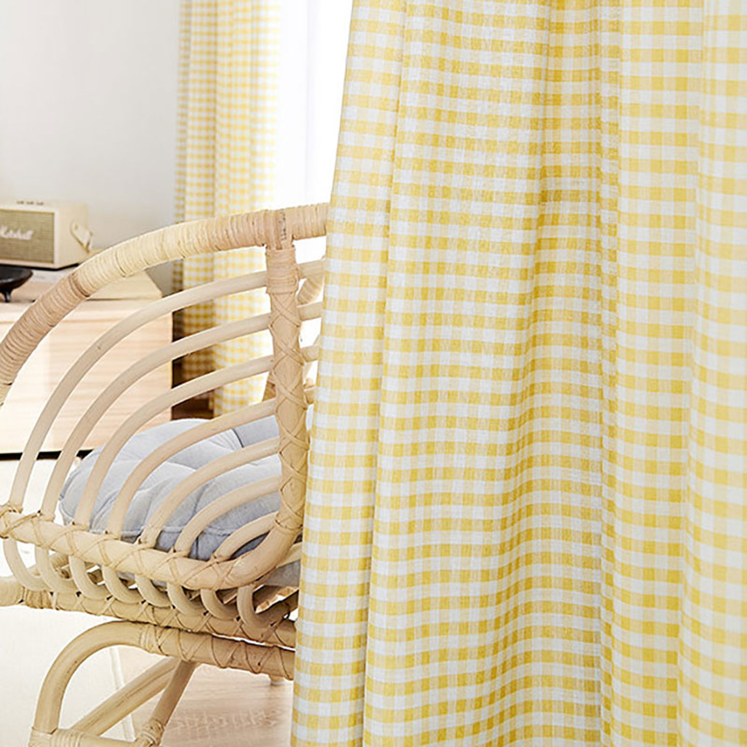 Farmhouse Charm Linen Style Yellow Gingham Check Curtains Rideaux à carreaux gingam jaunes, style lin, charme champêtre