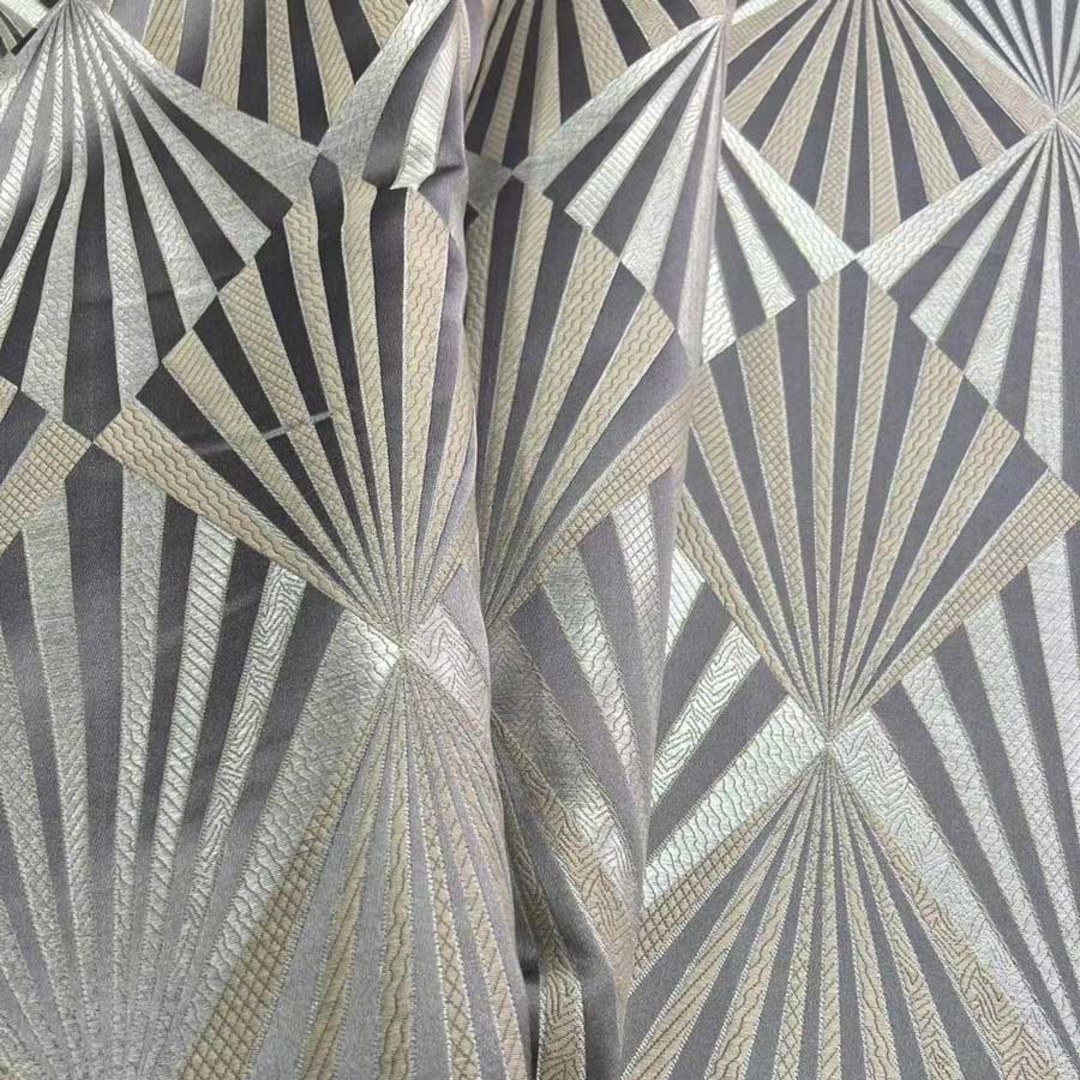Deco Diamond Jacquard Géométrique Taupe Gris Rideaux en Faux Soie