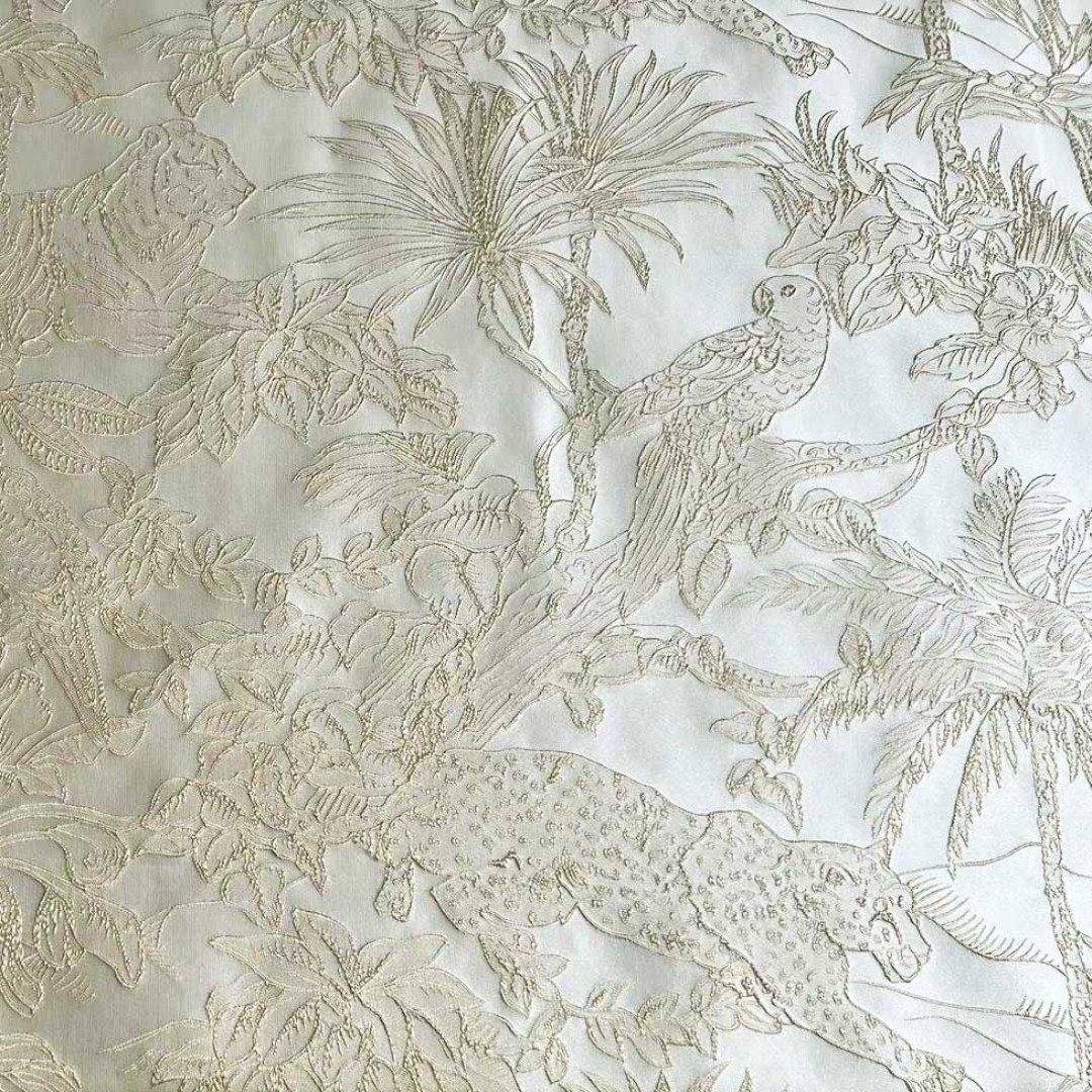 Donnez du style à vos fenêtres – Le motif Jungle Jive, plein de vie, présente des léopards, des perroquets et une végétation luxuriante. Idéal pour ajouter une touche audacieuse et exotique à votre intérieur.