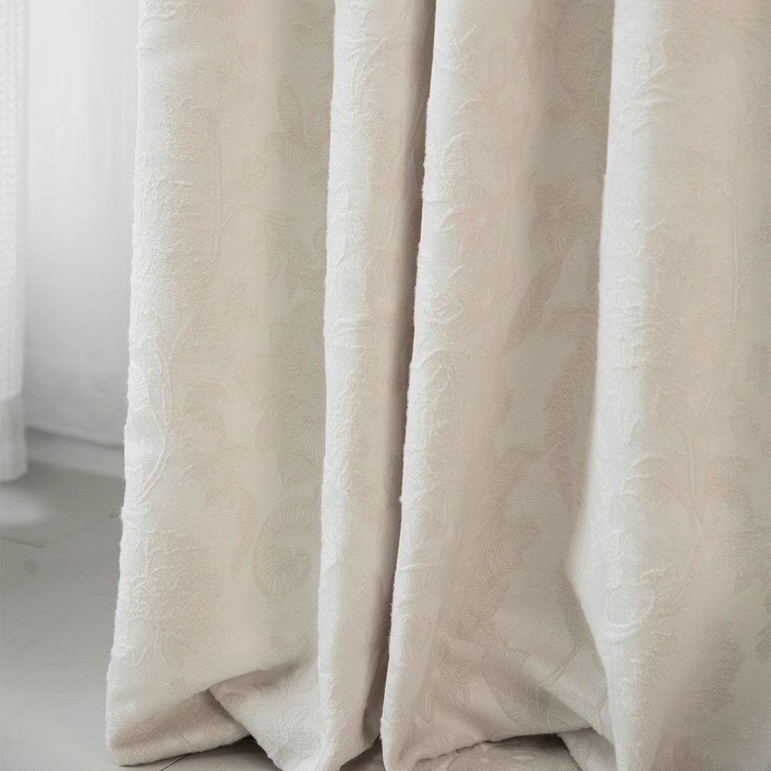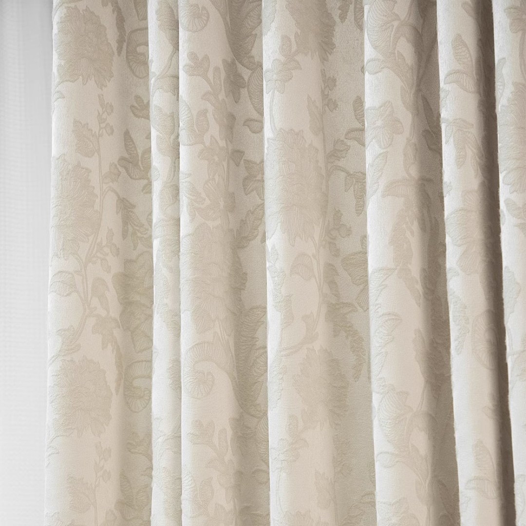 Les délicates fleurs et feuilles s'épanouissent avec grâce sur le tissu, créant un look intemporel et sophistiqué. Le léger éclat du matériau apporte une touche de luxe, tandis que la palette de couleurs discrète assure une polyvalence, le rendant parfait pour tout intérieur classique ou contemporain. Nos rideaux sur mesure sont confectionnés selon vos exigences exactes et sont disponibles dans un choix de styles de tête - œillets, patte de fixation, plissé simple, plissé façonné, plissé pincé, plissé inversé, poche à tringle et rideaux à vagues. Découvrez comment les rideaux floraux peuvent moderniser n'importe quelle pièce.