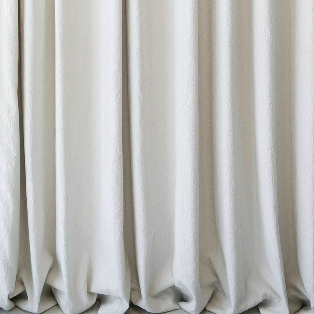 This chenille curtain features a subtle, textured floral pattern. Avec son motif floral texturé et discret, ce rideau en chenille apporte une touche de luxe raffiné à tout intérieur, créant une atmosphère calme et accueillante. Nos rideaux sur mesure sont méticuleusement confectionnés pour répondre à vos préférences spécifiques. Ils sont disponibles dans une variété de styles d’en-tête pour s’adapter à vos goûts, notamment à plis crayon, à œillets, à plis pincés, à plis tailleur, à plis inversés, à patte, à coulisse cachee, à poche à tringle et rideaux à vague. Découvrez comment les rideaux blancs en chenille peuvent moderniser n’importe quelle pièce.