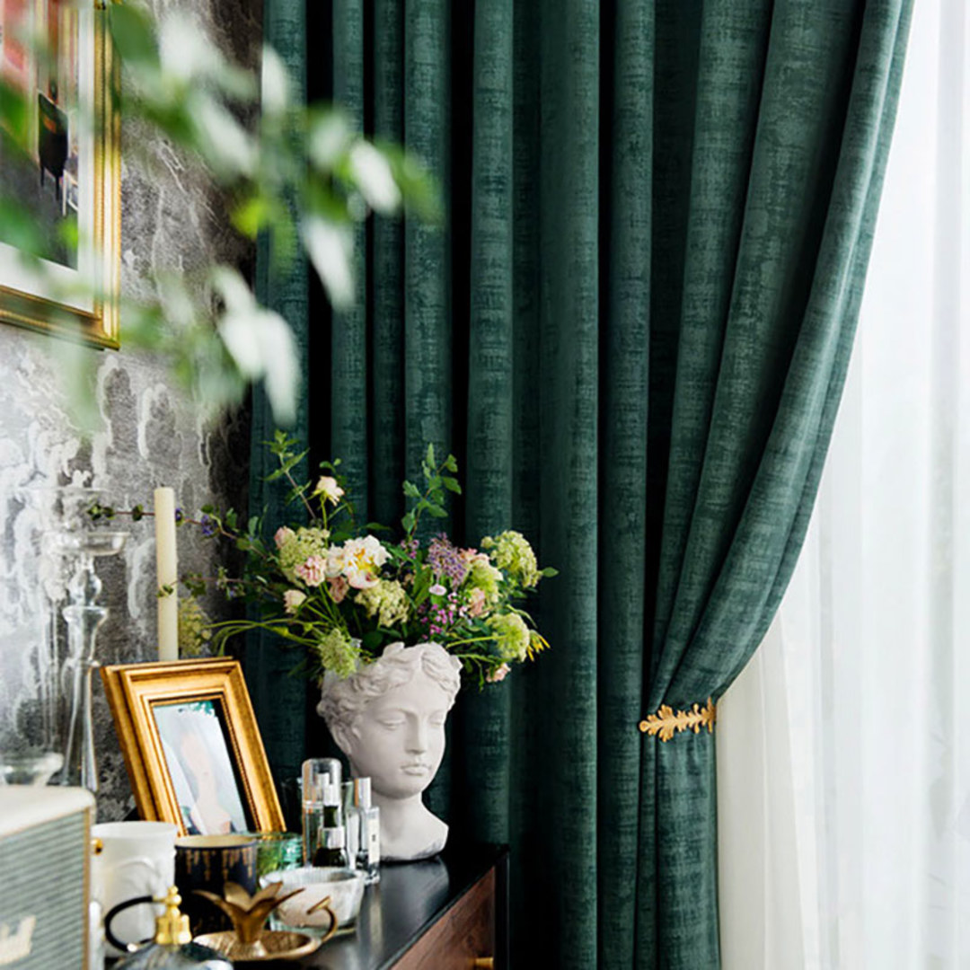 Ces rideaux verts en velours de qualité supérieure sont magnifiquement riches et d'une douceur exquise. La texture unique ajoute un détail intéressant au design. Nos rideaux en velours sur mesure sont méticuleusement confectionnés pour répondre à vos préférences spécifiques. Ils sont disponibles dans une variété de styles de plis pour s'adapter à vos goûts, notamment le galon plissé, l’œillet, le plis cucu, le plis tailleur, le plis boîte inversé, le passe-tringle à patte, le passe-tringle invisible, la poche à tringle et le rideau à vague.Cliquez ici pour découvrir nos magnifiques rideaux verts en velours.