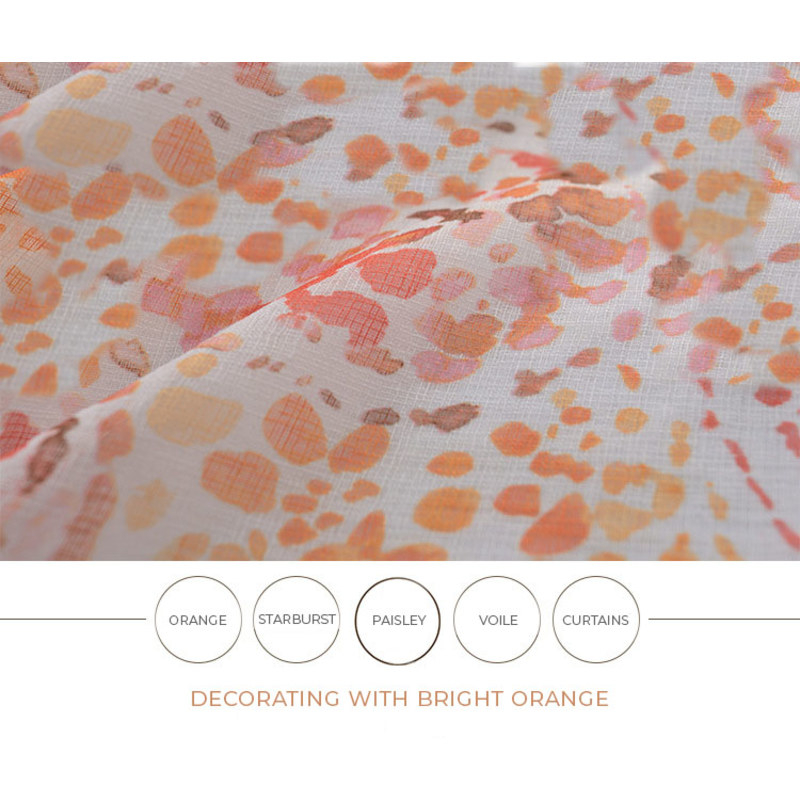 Ces rideaux en voile à motifs Paisley Orange Starburst laissent passer beaucoup de lumière naturelle tout en offrant intimité et une touche de couleur. La couleur riche, les beaux détails et le tissu raffiné offrent un look luxueux.